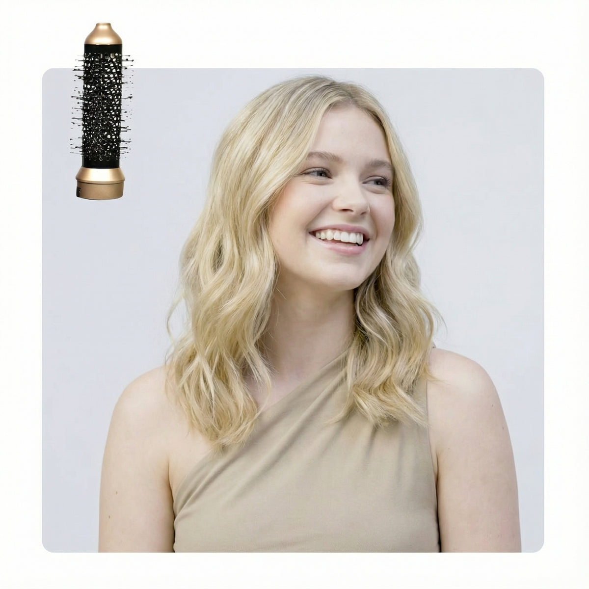 Med Airovas lockverktyg skapar du mjuka, definierade lockar på kort tid. Luftflödet formar automatiskt hårslingan runt cylindern, vilket ger ett jämnt resultat utan att du behöver snurra eller rulla håret för hand.
